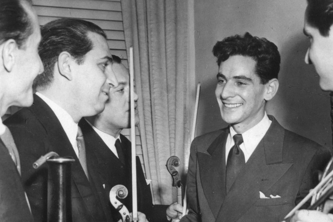 The young Leonard Bernstein and musicians | Photo by the New York Times/New York Philharmonic Archives