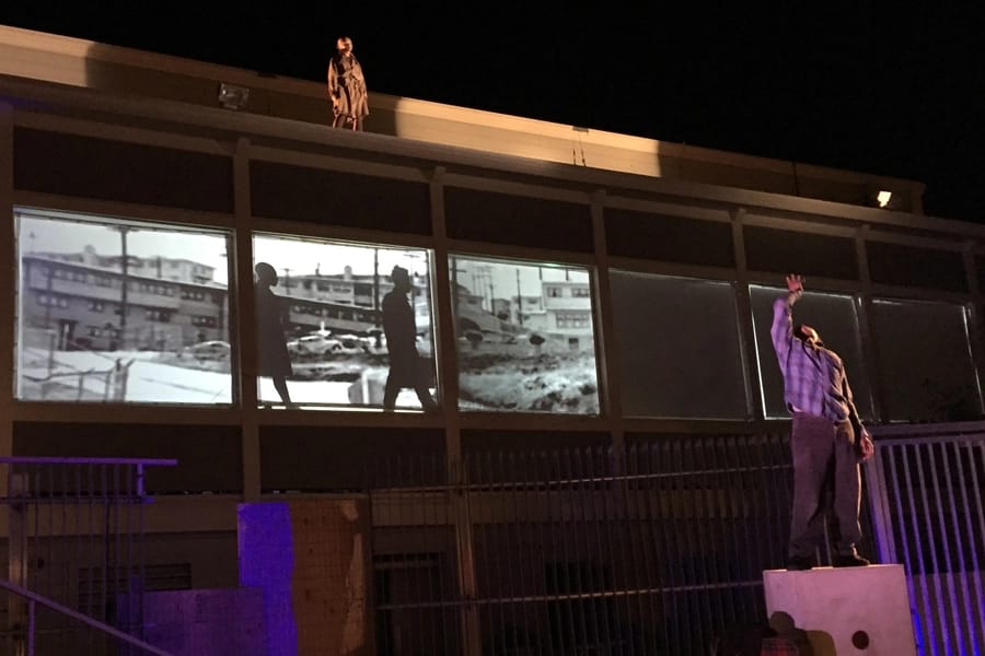 Zaccho Dance Theatre‘s multi-media work called Picture Bayview Hunters Point takes place on, around, and inside the Bayview Opera House in free performances this Thursday through Sunday nights at 8. Artistic Director Joanna Haigood says the neighborhood has been home to the company for almost 30 years, and has a rich history, seen and heard in residents’ stories.