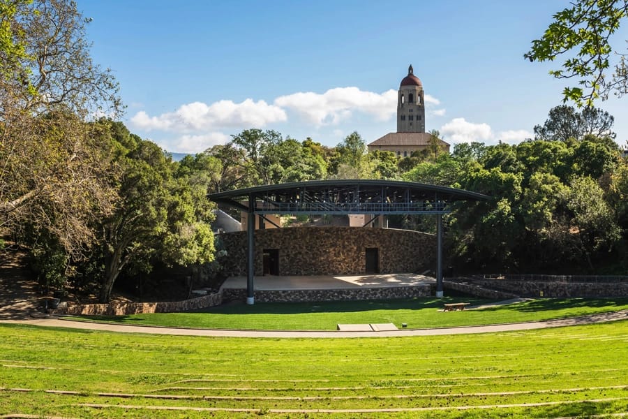 Frost Amphitheater will start a new chapter of its history this summer with both classical and pop music performances, as the latest phase of Stanford Live‘s Arts Initiative. The outdoor performance space, which was built in the 1930s, has had a complete renovation, with a design meant for optimal sound with minimal disturbance to its natural setting. San Francisco Symphony and the concert promotion company Goldenvoice have partnered with Stanford Live for its inaugural season.