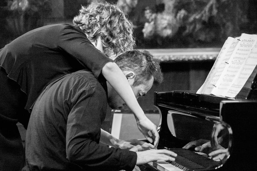 The piano four-hand duo called ZOFO – Eva-Maria Zimmermann and Keisuke Nakagoshi – will be presenting a world premiere this Saturday, inspired by Mussorgsky’s Pictures at an Exhibition. They commissioned 15 composers to write short works inspired by pieces of art, which will be displayed during the performance of ZOFOMOMA. They’re connected by a recurring theme, variations Nakagoshi wrote, based on the familiar Mussorgsky “Promenade.”