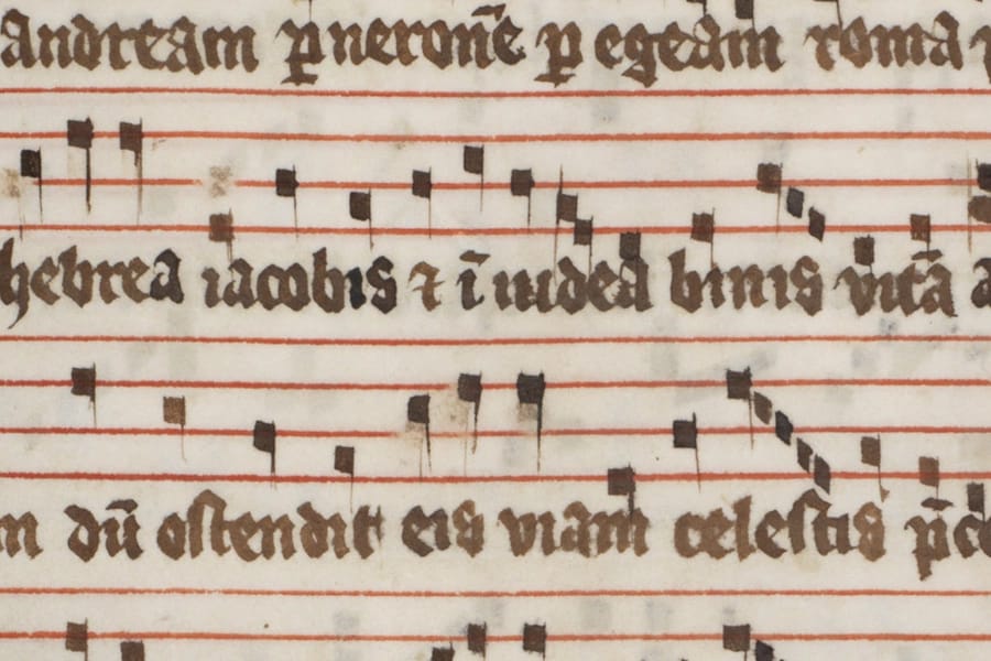 The standards of notation have been slowly refined over the years, although some of the principle ideas are very similar to the time of Gregorian Chants – when musical scores began to have an early “staff”, and the direction of melodies were determined by the placement of the noteheads. The shapes and groupings of the noteheads indicated their duration, and how the pitch would be approached – connected or detached from the note that came before, or with an ornamental melisma. But the text determined the rhythm and phrasing, and since they were sung in unison, dividing the melodies into measures wasn’t necessary.