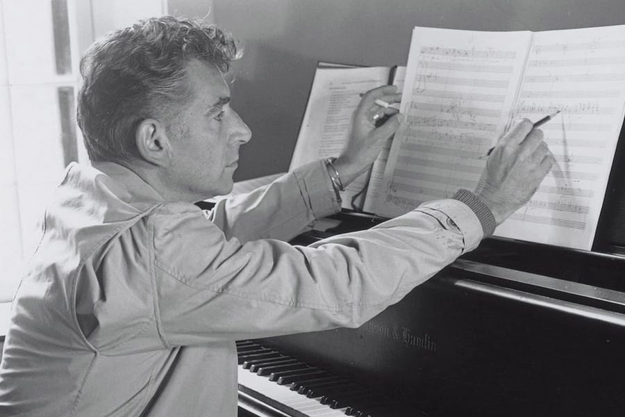 “Well, the thing about my dad, and this is what we are conveying in our presentation, is that he was such a people person. He just loved to be surrounded by people as much as possible,” Jamie Bernstein says. “His idea of fun after hours was to be surrounded by pals or students, or any convivial group that could cluster around the piano and play fun stuff, or sing songs or share the fun of music.” But despite his performances on the podiums of the great concert halls around the world, his musical tastes could be quite lowbrow: “When he went to the piano, he might play something of his own, but more likely he would play some ditty he loved from the radio when he was growing up, or he might play an ad jingle, or something from pop music on the radio, it could be just about anything. His mind was like a lint collector. Everything got stuck in there, so he had access, instant access to all sorts of things.” And it wasn’t only the people who went to parties with him who experienced this. “In the hour before dinner, he might go to the piano and say, ‘Remember that Flintstones episode we saw last night, and the music went like that?’ or he might talk about something he was noticing in a Tchaikovsky symphony. Because he was always teaching.”