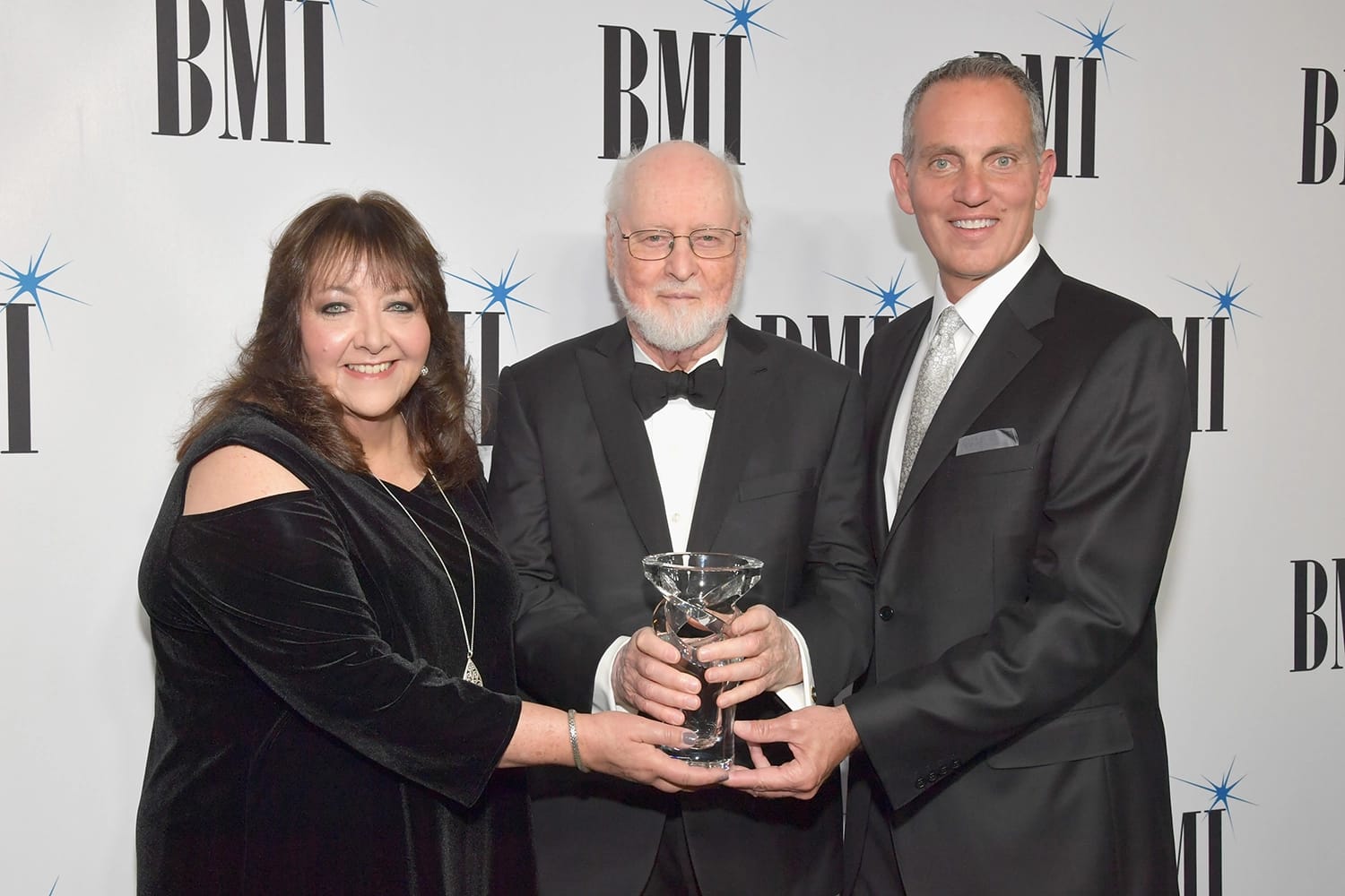 The BMI’s Doreen Ringer-Ross, John Williams, and BMI President Mike O’Neill at the 34th Annual BMI Film, TV & Visual Media Awards on May 9, 2018 | Photo by Lester Cohen/Getty Images for BMI