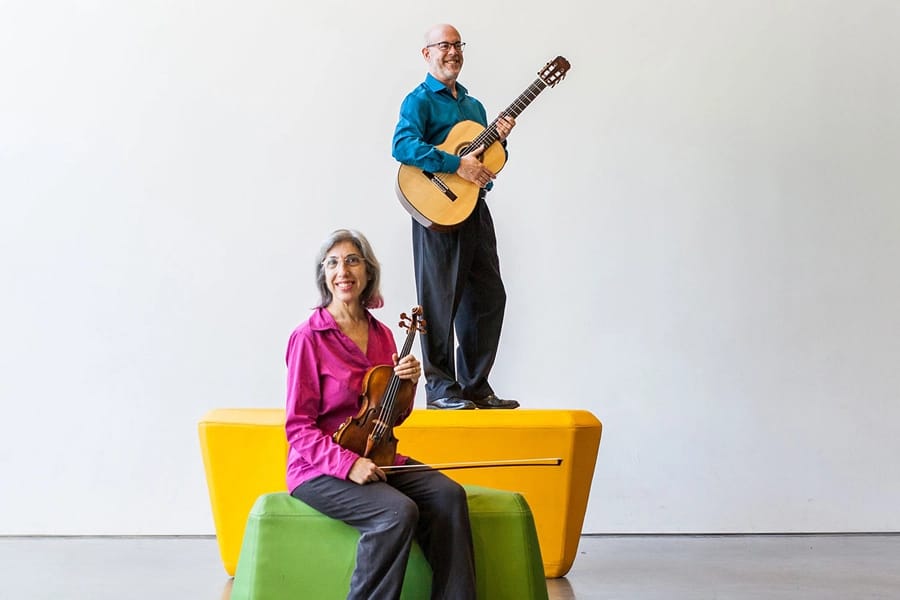 Left Coast Chamber Ensemble presents a program they’re calling ‘Air from Other Planets’ this Saturday and Monday nights, with music of Mozart, Schoenberg, and two world premieres. One of those, by guitarist John Schott, is a duet for LCCE’s guitarist Michael Goldberg and violist Phyllis Kamrin.