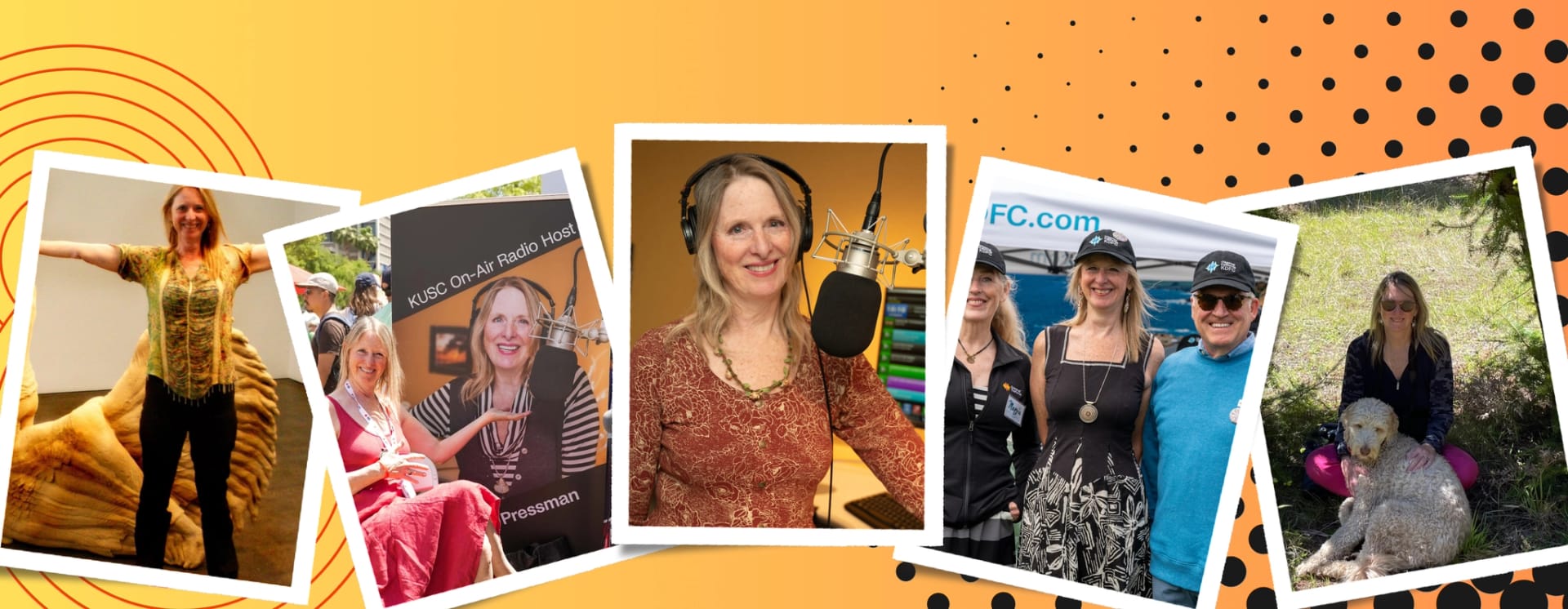 Her story took a turn when she and Peter moved to Sonoma County, where an exciting opportunity arose to join the launch of a new NPR station, KRCB. Robin volunteered right away, managing the board and quickly launching a five-hour Saturday afternoon folk music program that was an instant hit.