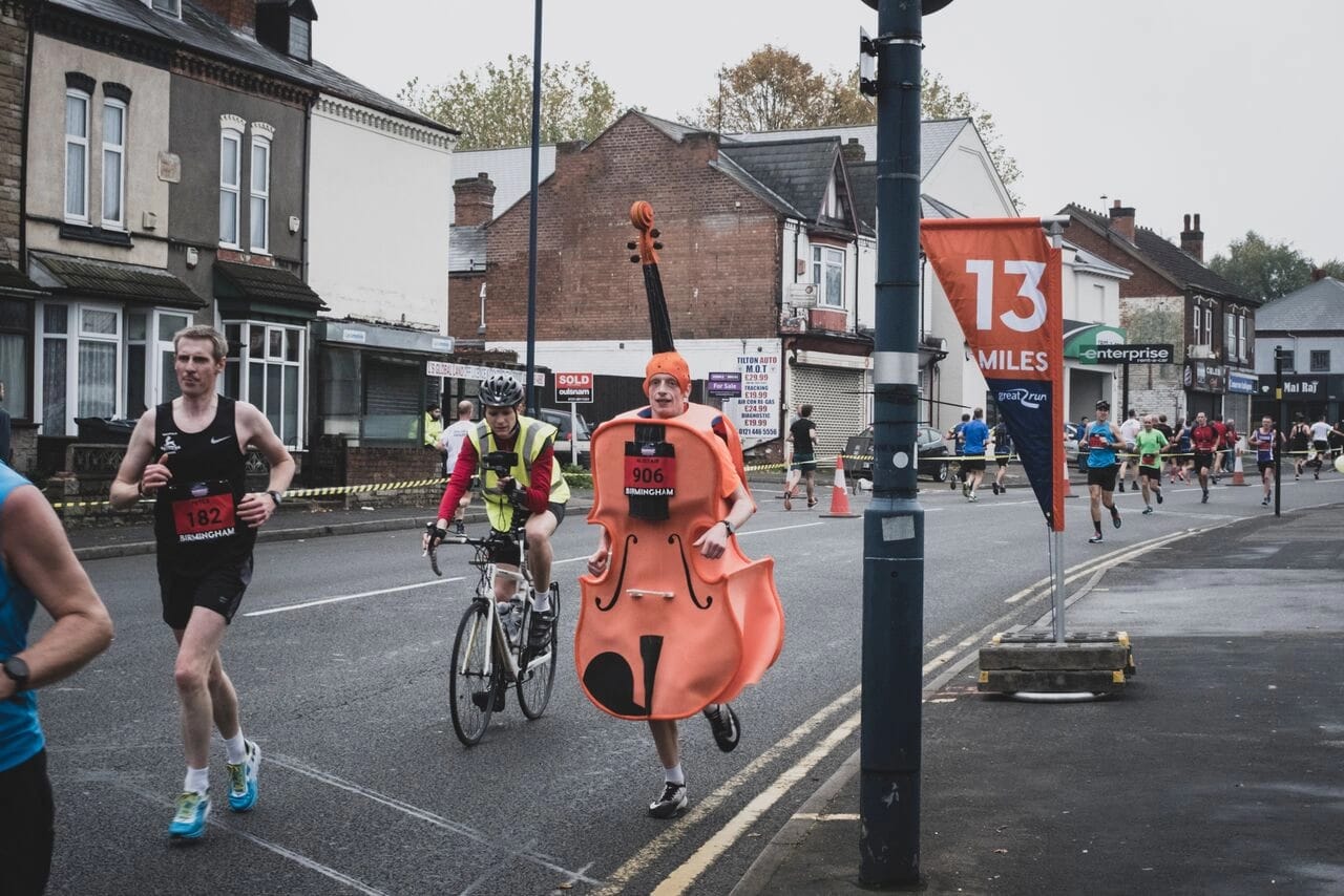 The viola may be the least-respected instrument in the orchestra (if you don’t believe me, this is just one of several websites dedicated to viola jokes), but a student from the Royal Birmingham Conservatoire has given it a share of a Guinness World Record: running the fastest marathon dressed as a musical instrument.