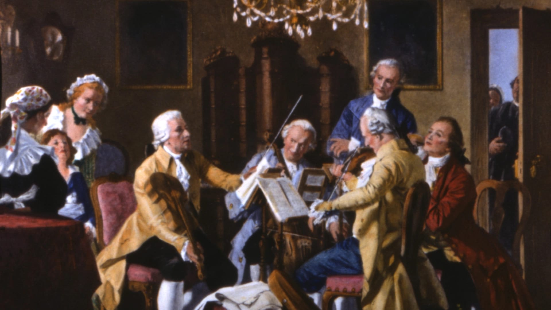 Joseph Haydn is known as the Father of the String Quartet. It all started with a type of music called the divertimento, which was meant for outdoor parties and social gatherings—fun background music. While writing divertimenti for four instruments—two violins, a viola, and a cello—Haydn said he accidentally discovered what we now call the string quartet. Here’s one of the first ones he wrote: his String Quartet No. 1.