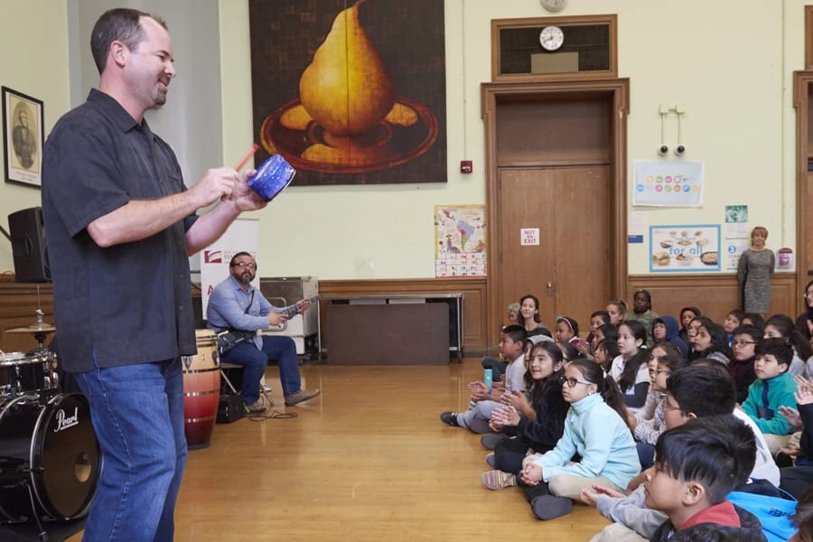 Sakurako Fisher, the President of the Symphony, says the organization’s interest in education goes right to their roots. “We, the San Francisco Symphony, were founded over a hundred years ago to bring music to our entire community, not just for a privileged few. That was, and remains, our mission today. In fact, our second-ever concert as a brand new, sort of merged organization that became the San Francisco Symphony, was to schoolchildren. It is truly in our DNA… Nothing compares to seeing young minds expanding and growing through exposure to not only the musical performances, but also through the integration of music into the lessons being taught by our city’s public school teachers every day.” The program seeks to make sure that every public school student between first and fifth grade has repeated opportunities to hear live concerts at their schools, as well as going to Davies to hear the Symphony, in concerts especially for them. There are also curricula that teachers can use to prepare for the program, and discuss it afterwards. At the Sanchez elementary school performance last week by the percussion ensemble called Caribbean Express, Mayor Mark Farrell celebrated the thirty year partnership with an official proclamation. He says one of the things he likes best about it is its inclusiveness, throughout the city. “We need our children, and those in our public schools here that we’re celebrating here today to have the opportunities to be part of our arts community. To inspire them. To be the next artist, to be the next member of the symphony. To do whatever they’re going to do in life, but to inspire and enlighten, and to open their minds.”