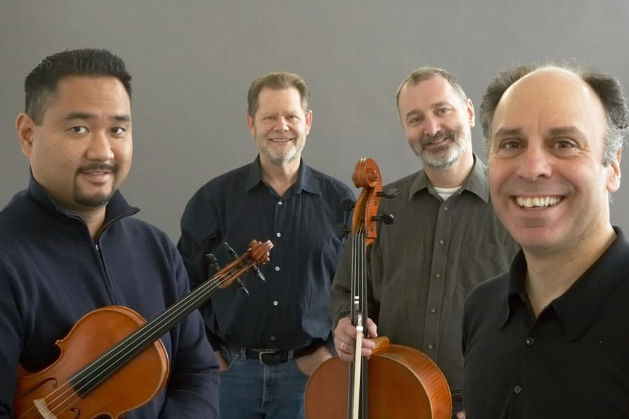 In the first season of performances (there are also concerts on Saturday mornings in early February, March, and May) they’ll play the first two quartets, and proceed through all 15 in chronological order. “We’re going to be doing all of the Shostakovich quartets, plus three other chamber works, including a magnificent viola sonata,” Greenberg says. “This will be spread over two seasons, nine concerts. This wonderful quartet lets me talk, they play musical examples that support the talk, and then they perform the actual piece that we’ve been discussing.” The ensemble and Greenberg have collaborated on this type of performance for more than 20 years. Violist Yarborough says: “I don’t think I’ve ever felt like an audience was more ready, more primed to appreciate the music we play than after they’ve heard his talk. As a performer who really likes to see the music hit home with an audience, this is a winner.” Part of the challenge is to convey the kinds of political pressures that Shostakovich faced when he was composing. “We can’t even come close to comprehending what the Soviet Union was like, particularly under Stalin,” Greenberg says. “And so my job really is to create that context. And to understand Shostakovich not in our terms, but in his terms, and in his day.” The Alexander String Quartet has recorded the complete Shostakovich quartets, and performed them many times. “I’ve gotten to know them all as old friends, in a way,” Paul Yarborough explains. “They each have a feel about them, and yet there’s so much in common, there’s so much continuity in Shostakovich’s string quartets. There are elements that seem to keep coming back.”